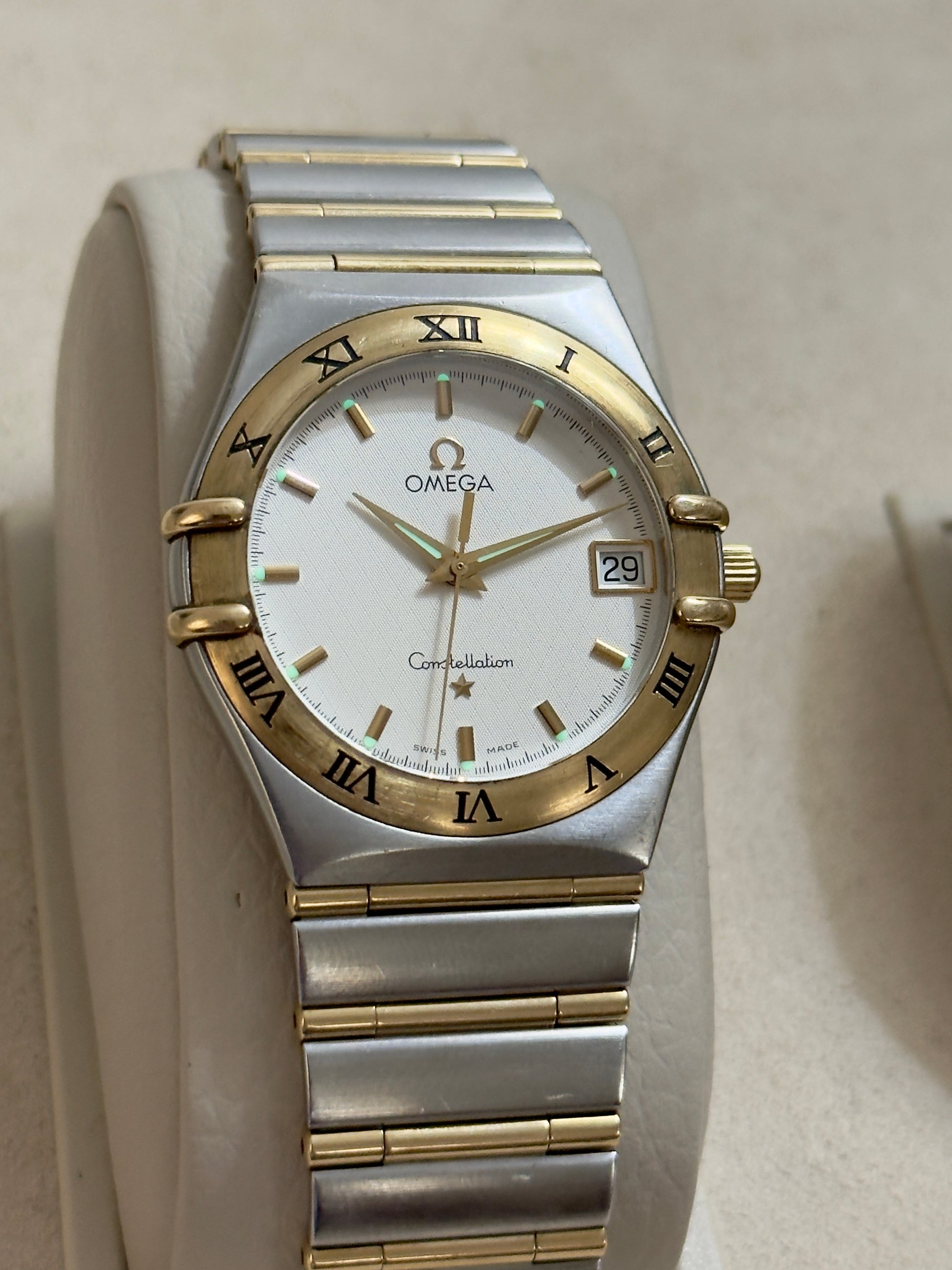 🟢 Omega Constellation Manhattan Barras de Oro 18K (moderno) w/Box 🟢
